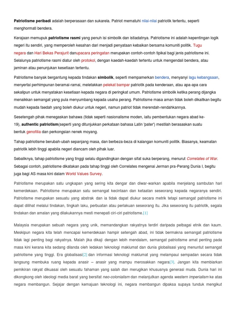 Apa pula kaitannya Ogos dan Malaysia. Apa yang ingin kita suburkan dalam kalangan rakyat Malaysia ialah semangat patriotisme iaitu perasaan cinta yang mendalam dalam diri kita kepada negara tanah tumpah darah. Jujurnya kita tidak dapat menyemai semangat patriotisme jika program yang dianjurkan itu bersifat sementara atau bermusim semata-mata.